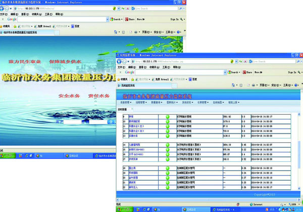 三、系統(tǒng)功能 v 實(shí)時(shí)采集管道壓力、流量數(shù)據(jù)數(shù)據(jù)接收中心服務(wù)器; v 能顯示整個(gè)管網(wǎng)系統(tǒng)的供水管線(xiàn)圖及地理分布圖(及用戶(hù)用水信息); v 集中顯示各監(jiān)測(cè)點(diǎn)重要參數(shù)(如瞬時(shí)流量、累計(jì)流量、壓力、電池電壓、報(bào)警狀態(tài)、通訊狀態(tài); v 各用水單位的界面和報(bào)表功能,可隨時(shí)增加或刪除,操作方便快捷; v 按區(qū)域、地塊劃分用戶(hù),注明長(zhǎng)期用戶(hù)和季節(jié)性用戶(hù),能單獨(dú)顯示各用戶(hù)子站的全部測(cè)量參數(shù)及設(shè)置參數(shù); v 能自動(dòng)生成各用戶(hù)的瞬時(shí)流量、累計(jì)流量、壓力的并行歷史曲線(xiàn),并可查詢(xún)?nèi)我庥脩?hù)、任意參數(shù)、任意時(shí)段的歷史數(shù) 據(jù),歷史數(shù)據(jù)和曲線(xiàn)可以轉(zhuǎn)存和打; v 能生成各用戶(hù)的用水量日?qǐng)?bào)表,月報(bào)表及年報(bào)表,生成分時(shí)等特殊報(bào)表的功能。任意組合用戶(hù)測(cè)量趨勢(shì)、測(cè)量參數(shù)累 計(jì)、故障時(shí)段等趨勢(shì)記錄打印輸出。 現(xiàn)場(chǎng)圖片  |